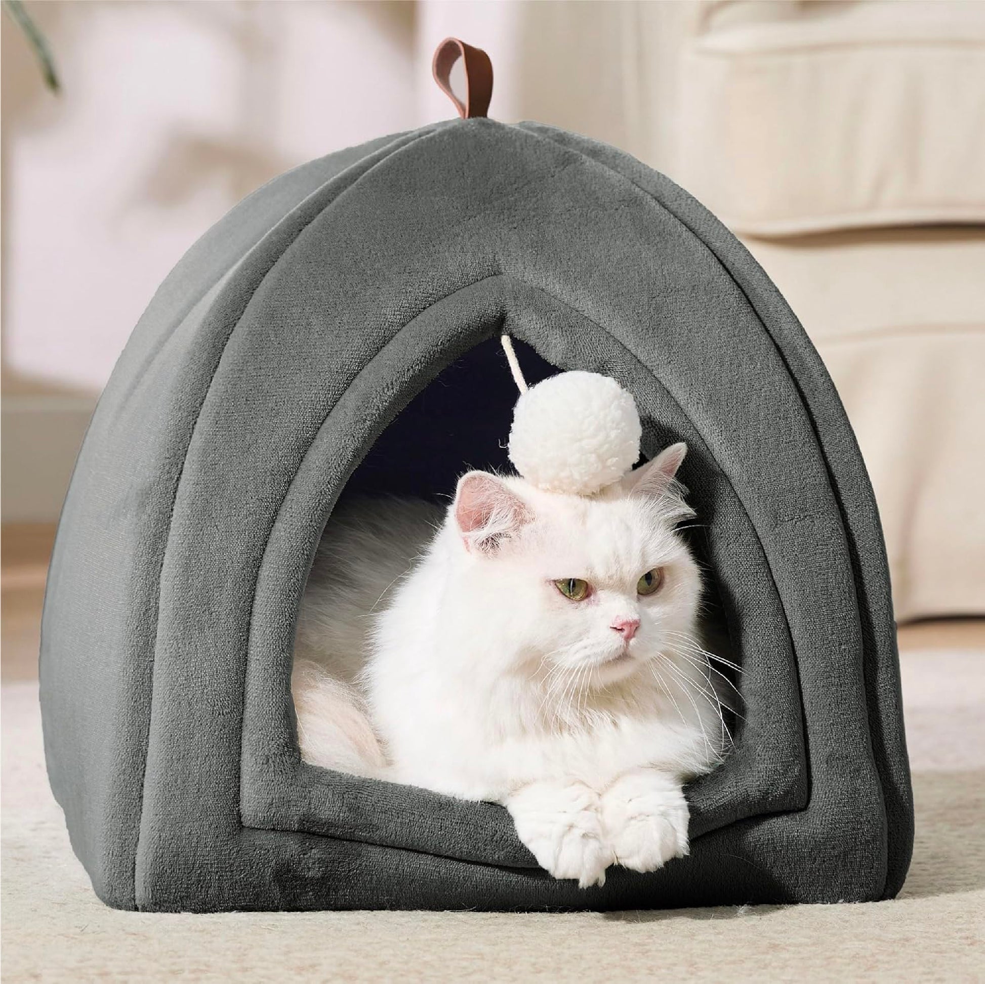 Give your cat the perfect cozy retreat with the Bedsure Cat Cave Bed, a warm and foldable hideaway designed for comfort and security. Measuring 40 cm, this spacious cat cave is ideal for kittens, small, and medium-sized pets. Made with soft, plush fabric and a thick, cushioned base, it provides superior insulation and comfort, keeping your feline warm during colder months. The foldable design makes it easy to store or carry, perfect for travel or compact living spaces. The washable inner cushion ensures hygiene and easy maintenance, while the dark grey color adds a modern, elegant touch to any home. Its enclosed shape mimics a natural den, offering a sense of safety that helps reduce stress and anxiety. Whether used for sleeping, hiding, or lounging, this cat bed provides the ultimate relaxation experience. With Bedsure, your pet gets comfort, warmth, and peace — all in one stylish little cave.