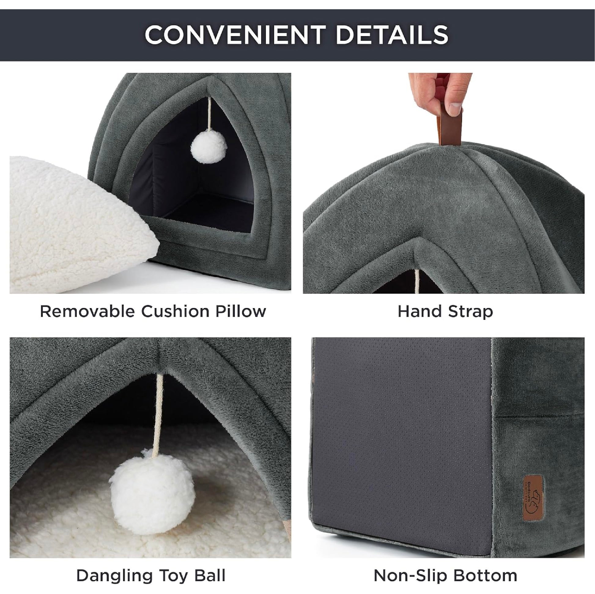BEDSURE Cat Cave Large Cats, Dark Grey - Foldable Cat Bed