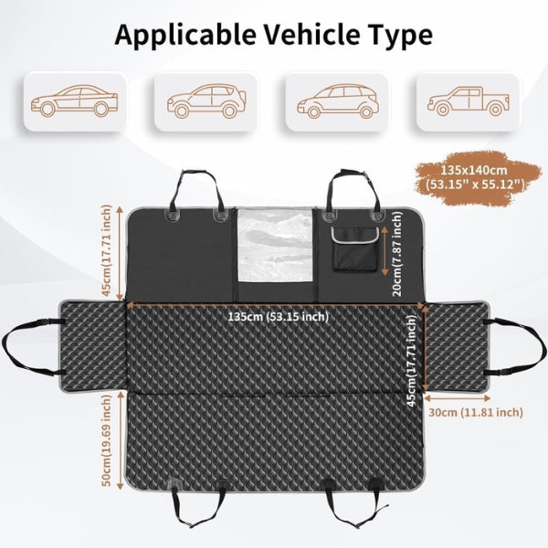 Travel comfortably and safely with your pet using the Dog Car Seat Cover with Viewing Window. Designed with heavy-duty waterproof Oxford fabric, it protects your car’s interior from mud, fur, and spills while providing your dog with a soft, secure resting spot. The mesh viewing window allows airflow and lets your pet see you, reducing anxiety during travel. Anti-slip backing, seat anchors, and side flaps ensure a snug, stable fit across seats of most vehicles. Easy to clean and machine washable, it combines convenience with durability. The universal size fits cars, SUVs, and trucks, making it perfect for all adventures. Whether you’re heading to the park, beach, or road trip, this cover guarantees comfort and protection for both you and your furry co-pilot. Make every journey cleaner, safer, and more enjoyable with this travel essential.